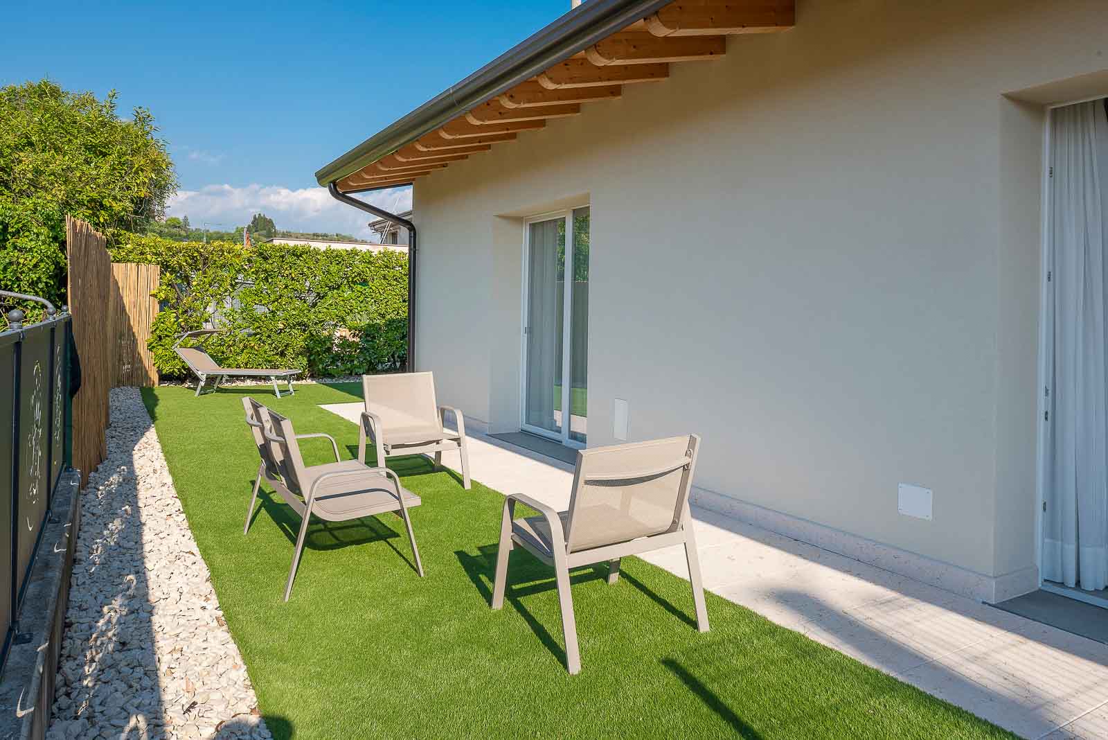 Newly built apartment with modern finishes, located in a private courtyard with free parking, swimming pool and large shared park. The apartment has a private garden.